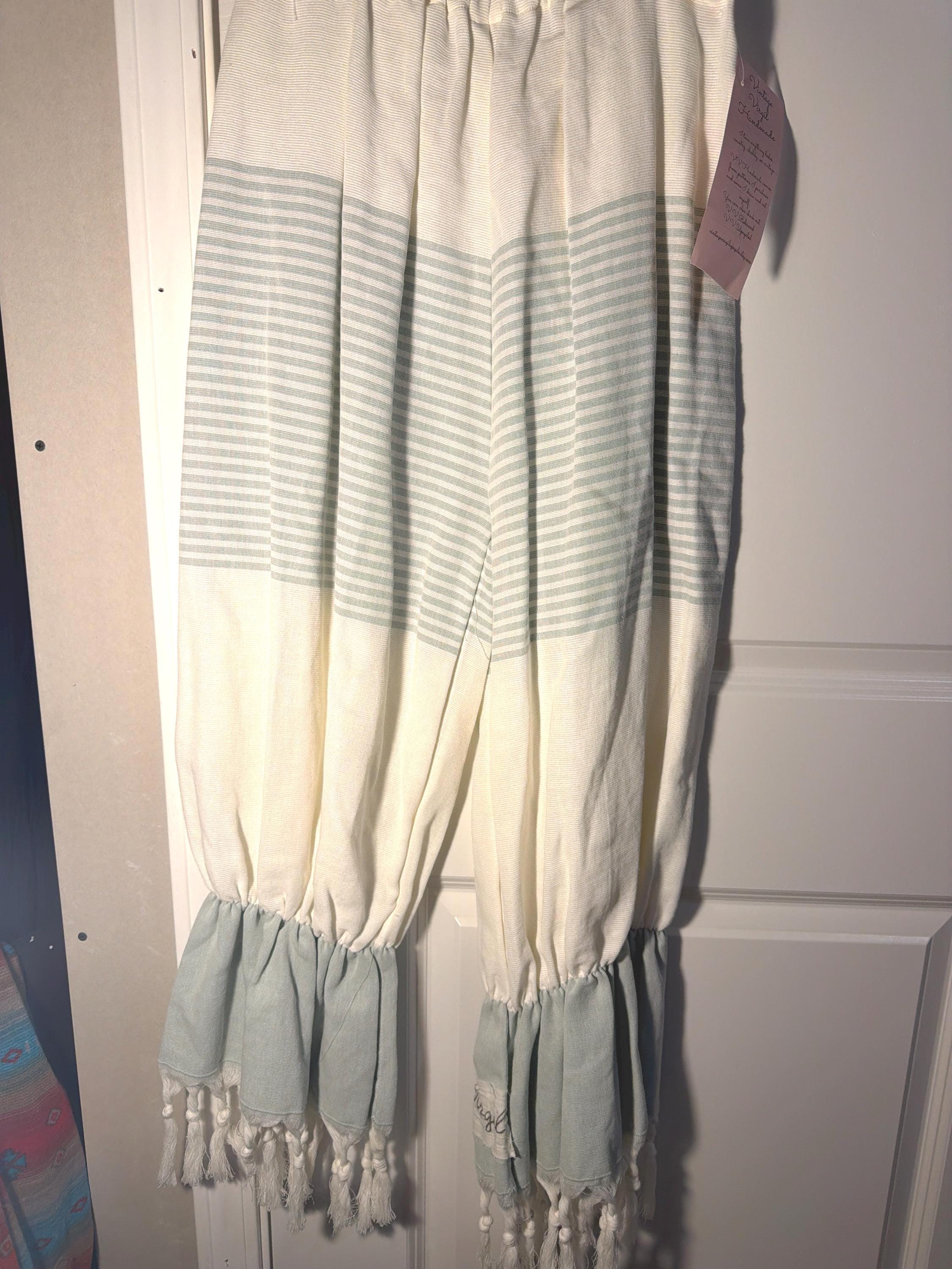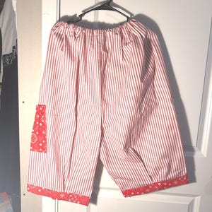 Pictured is a pair of bloomers that I made out of a tablecloth. Fringe bottom, up cycled vintage. they are made off of an extra large pattern. They have an elastic waste.